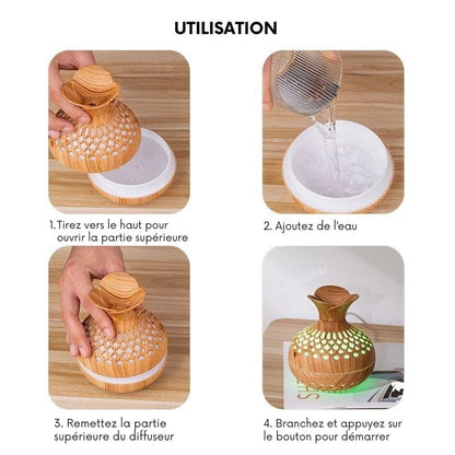 Attention, ce diffuseur est un humidificateur d'air, ne convient pas avec l'utilisation des huiles essentielles !